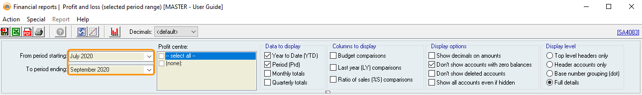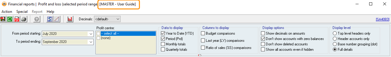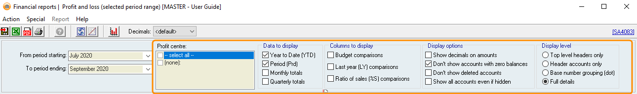- SA4083 is the go-to report for Profit and Loss unless you have a specific customised report
