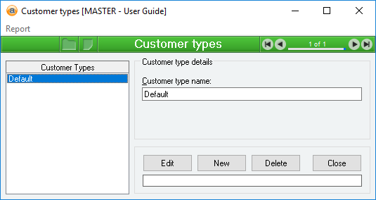 The list of customer types is non-editable and serves only as a display and selection method. When you are ready to edit or delete a Customer type, ensure that you have the desired Customer type selected in the list before clicking on the edit or delete button.