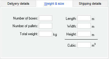 The weight and dimensions section of a dispatch allows various details to be entered relating to the physical size of dispatch. The available fields are as follows.