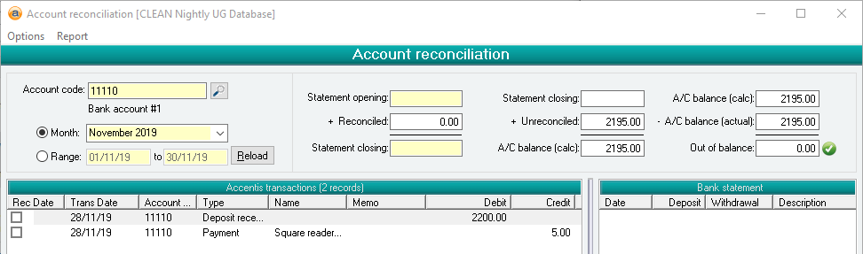 When you perform an Account reconciliation, you will now match off the two transactions above with the single deposit that was made into your bank account by the EFT facility