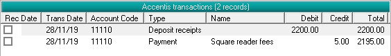 It can be common for EFT payment facilities such as Square, PayPal and others to deduct a fee for their services from the total sales of the day before processing the funds to your bank. When this happens, if you haven't accounted for it correctly, the figures won't balance in Accentis Enterprise because the values will be different. The solution to this is to create a payment to the EFT facility for the amount that was deducted as fees after entering the total value of sales. This then becomes your daily settlement fee which, when deducted from your daily sales total for the EFT facility, will now reconcile with the amount deposited into your bank by the EFT facility.