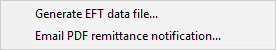 This menu option displays the Generate EFT data file form pre-filled with the details of the current automated remittance.