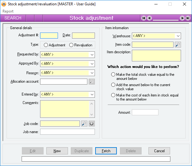 A stock adjustment / revaluation allows you to modify the current quantity in stock or value of stock of a particular stock item.