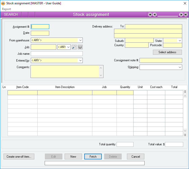 This is the Job to which the stock assignment relates. To display a list of all valid Jobs, click on the button or press the QuickList Hot Key.