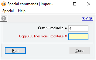 This option allows you to import all lines that were included in a previously applied stocktake. Enter the stocktake number in the field or press F3 to display a Quicklist of all available stocktakes.