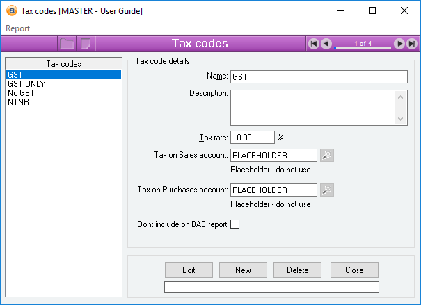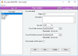When you want to edit or delete a Tax code, highlight the Tax code in the list and click on the Edit or Delete button.