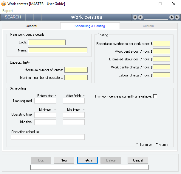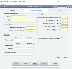 Work centres can also be used to represent external contractors that may be involved in the manufacturing process, such as a paint shop or galvanising service. Such Work centres can then be used in routings for a manufactured item just as if they were done in-house.