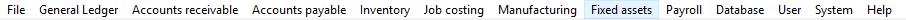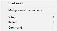 The Fixed assets management section can be accessed by selecting it from the main menu.