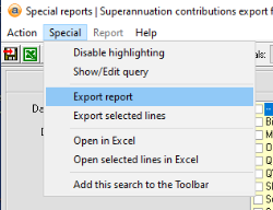 - To export the report for upload to your Super clearing house – Go to the Special menu and select Export report.