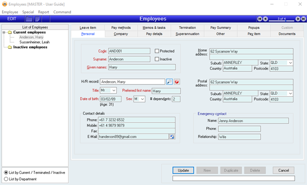 - Update to save. The employee is now linked to the H/R record