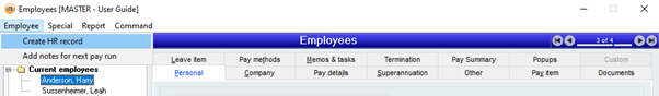 - Click employee on the top menu > Create H/R record