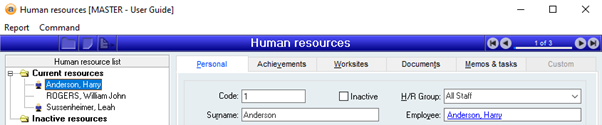 When an employee is linked to the H/R record, the employee icon will be visible beside the employee’s name on the Human resources form.
