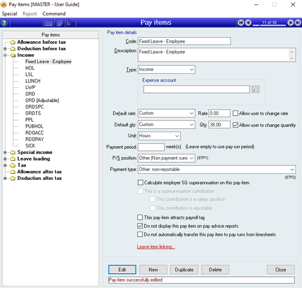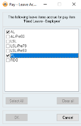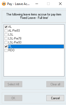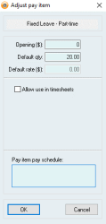 - If not all employees will be using fixed leave then there will need to be multiple Pay items set up. Employees that accrue leave through their normal pay items will need to remain the same and new pay items will need to be created/duplicated for the employees that will be accruing fixed leave.