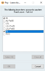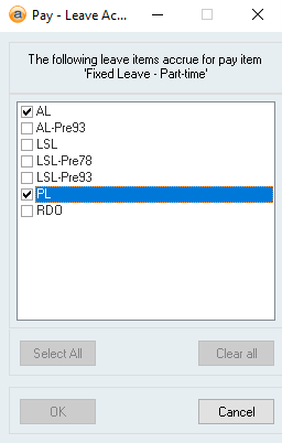 - Check the newly created Pay item is ticked in the This leave item accrues for each of these Pay items box on the required Leave items
