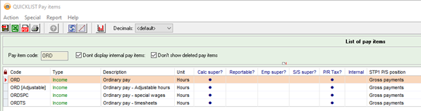 - Payroll > Report > QUICKLIST Pay items
