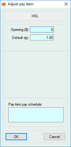 When using Timeclock payroll, this field allows schedules to be set to specify which pay item is applicable for a given time period.