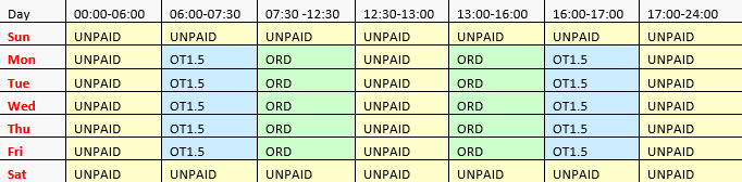 If multiple consecutive time periods for the same pay item exits on the one day, you can use multiple ABBBBCCCC blocks or concatenate into a single block with appropriate start and end times.