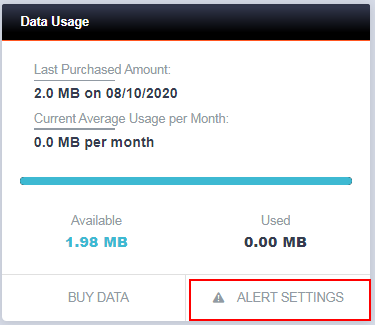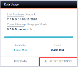 Once you have done that, then you can go to the Manage Service section and ensure that these contacts are notified by setting the low data notification limit in the Alert Settings: