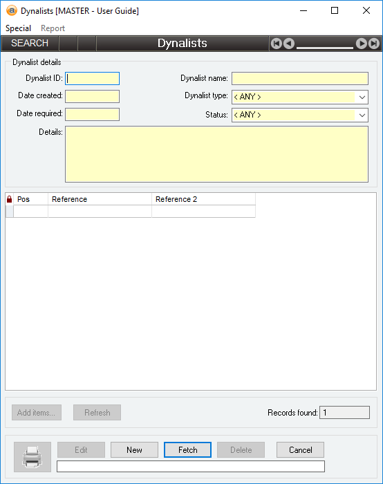 Activation: Main > Database > Dynalist manager