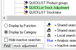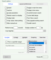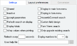 Searches provide a method of listing any of the data from the database in a convenient, user-definable and easy-to-understand manner. A search is generally used when a list of data is required with no particular formatting as a requirement.