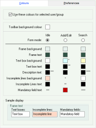 - Colours can be set for incomplete lines of a form and for mandatory fields