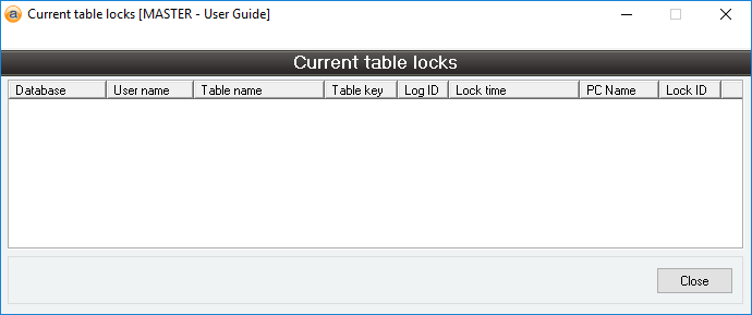 The locking subsystem operates transparently to the user. Users cannot manually add their own locks to the system but they are able to view which locks are currently in place for their database. Users with Administrator permissions can also view locks in all other databases that are being used.