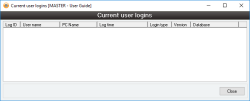 This is the list of users logged in to the current database. If you have Administrator permissions then the list will display logged-in users from all databases connected by server. The details displayed are as follows: