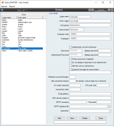 This is a list of all users that are currently defined. As you click on each of these items, their details will be displayed to the right of the list.