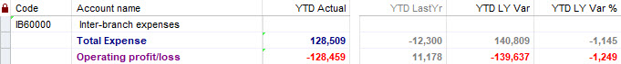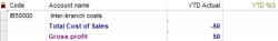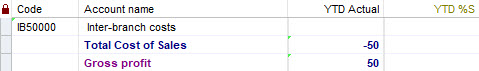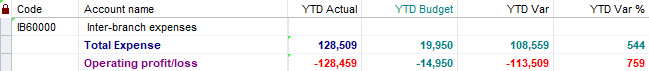 This is the YTD Var shown as a percentage – if a Budget figure is higher or lower than the Actual figure, the amount of the difference will be shown as a percentage. For example - If an Income account had a budget of $100, and transacted $50, the YTD Var % column will show a red -50% variance for that account, as the amount transacted is 50% lower than the budget. Similarly, if you had a budget of $100 and transacted $120, the YTD Var % column will show a green 20% variance, as the transactions were 20% higher than the budget. Cost of Sales and Expense accounts work in reverse to the Income accounts for the colours and negative/positive Var %.