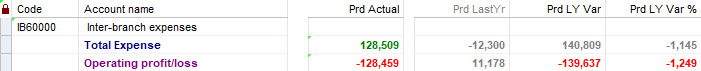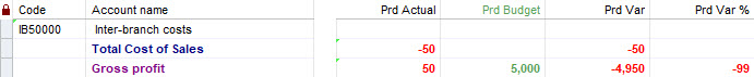 These are the budget comparison columns that display when Period (Prd) in the Data to display filter is ticked.