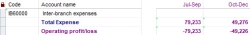 Each Ledger category will also show a “Total” row in bold blue text, and some Ledger categories will display one or two rows of profit/loss values in bold purple text.