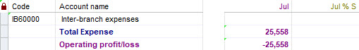 This is the ratio of sales for the given month and displays when Monthly totals in the Data to display filter is ticked. The name of the column depends on the month it is representing and is depicted in a three-character format, e.g., Jul %S or Dec %S. One column will display for each month in the selected period. This figure is determined by comparing the given Month figure with the sum of all Actual figures for that month per Ledger category.