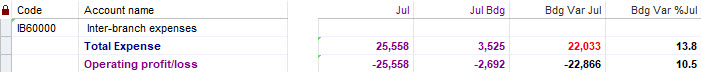 These are the columns that display when Budget comparisons is ticked in the Columns to display filter and will depend on which options are selected in the Data to display filter.