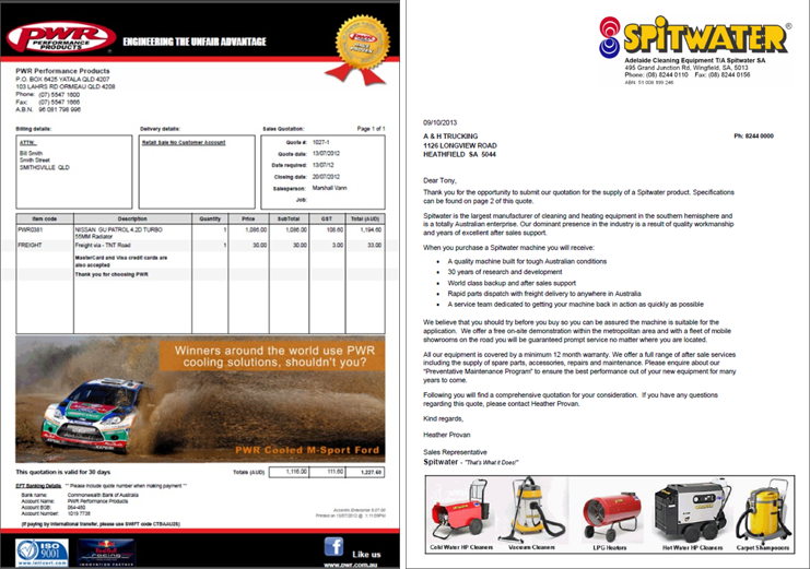 Yes! Consider also having an advertising banner graphic along the bottom of key reports such as Sales Quotes or invoices (you wouldn’t want them on all reports, just the most prominent ones). Here are some notable examples of what our other customers have done with their reports.